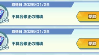 ポケモンマスターズEX【ポケマス】2026年01月26日配布|不具合修正に伴うダイヤ補填について 2026年01月26日配布|不具合修正に伴うダイヤ補填 2026年01月26日、不具合修正に伴うダイヤの補填が配布されました。 今回配布されたダイヤは、2025年10月27日に開催されたトリプルピックアップマスターフェスにおいて... 2026.01.27ポケモンマスターズEX