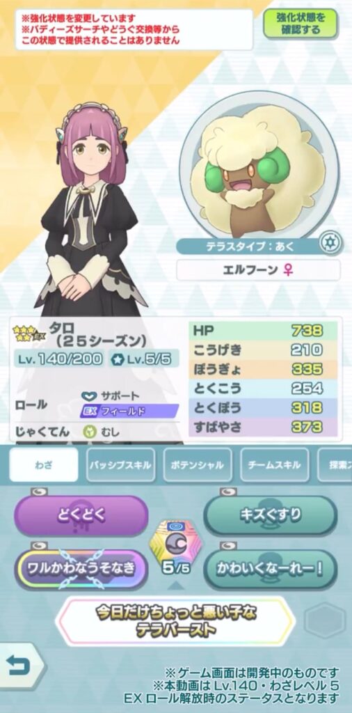 タロ(25シーズン)&エルフーンは、初めて登場したときだけ、パッシブスキル【初登場時あくBテラスタル】自分があくタイプにバディーズテラスタルする、サポートバディーズ。