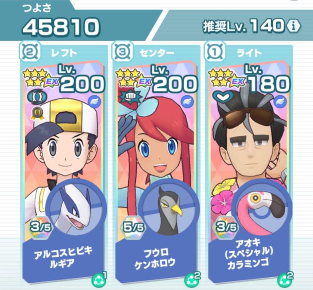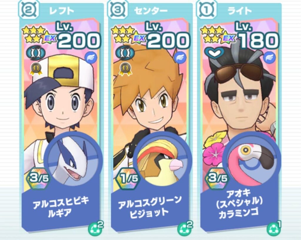 アルコスグリーン&ピジョットがわざレベル1で火力不足を感じたため、アルコスヒビキ&ルギアの【バディーズわざ】の威力を上げられる、スキル装備を作成しました。
