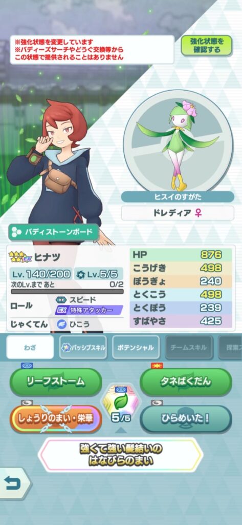 ヒナツ&ドレディアは、パッシブスキル【シンオウの速攻】の効果によって、自分のチームにシンオウのタグを持つ味方のバディーズが多いほどバディーズわざ発動可能状態までのカウントを減らせる、スピードバディーズ。