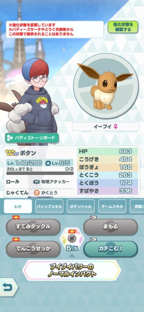 ボタン&イーブイは、パッシブスキル【攻撃アップ時威力上昇5】の効果により、自分の攻撃があがっているときに技の威力が上昇する、アタッカーバディーズ。