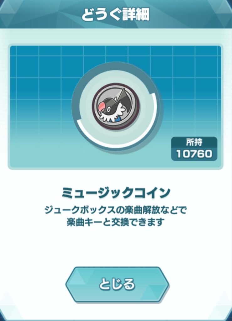 『ミュージックコイン』は、どうぐ交換の「楽曲」で使用できるアイテムです。