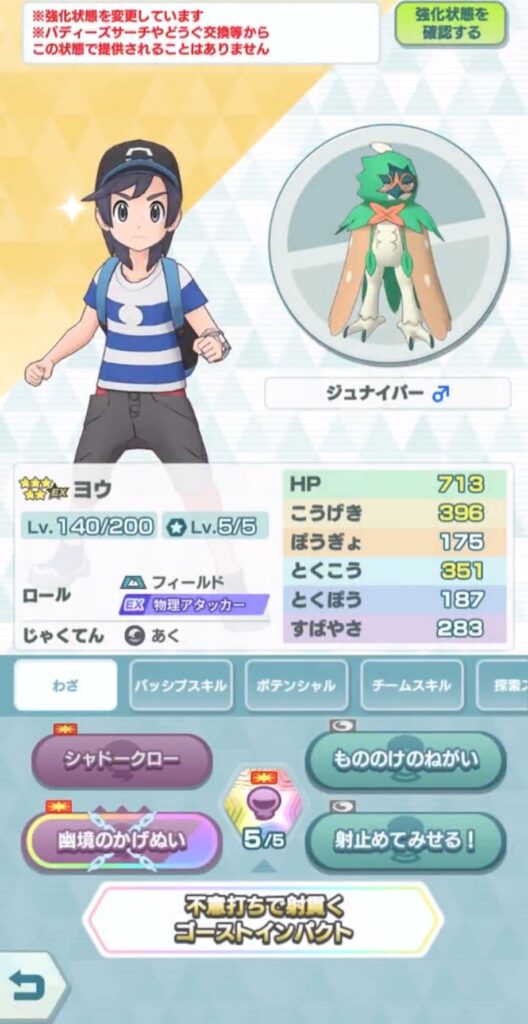 ヨウ&ジュナイパーは、シンクロ技【幽境のかげぬい】で攻撃する際、【もののけのねがい】の残り回数が1以上であればその回数を1減らし、ゾーンをもののけゾーンにしながら、自分の次回物理技威力ブーストを2段階あげられる、フィールドバディーズ。