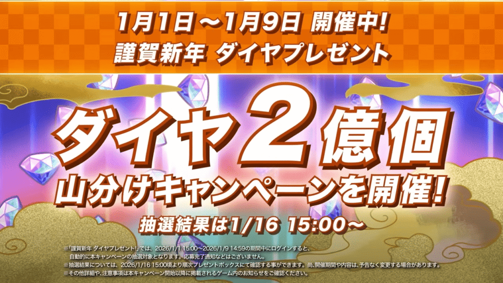 以下の期間にログインした方の中から、抽選でダイヤをプレゼント!
