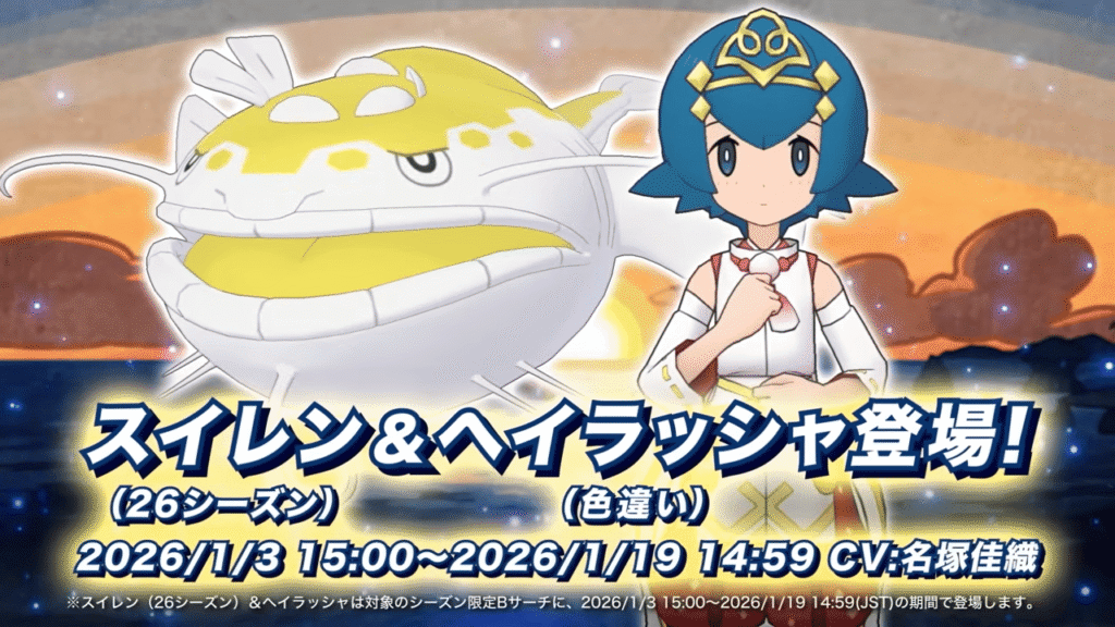 「スイレン(26シーズン)&ヘイラッシャ」は初めて登場した時にドラゴンタイプにBテラスタルするサポート!EXロールはフィールド!