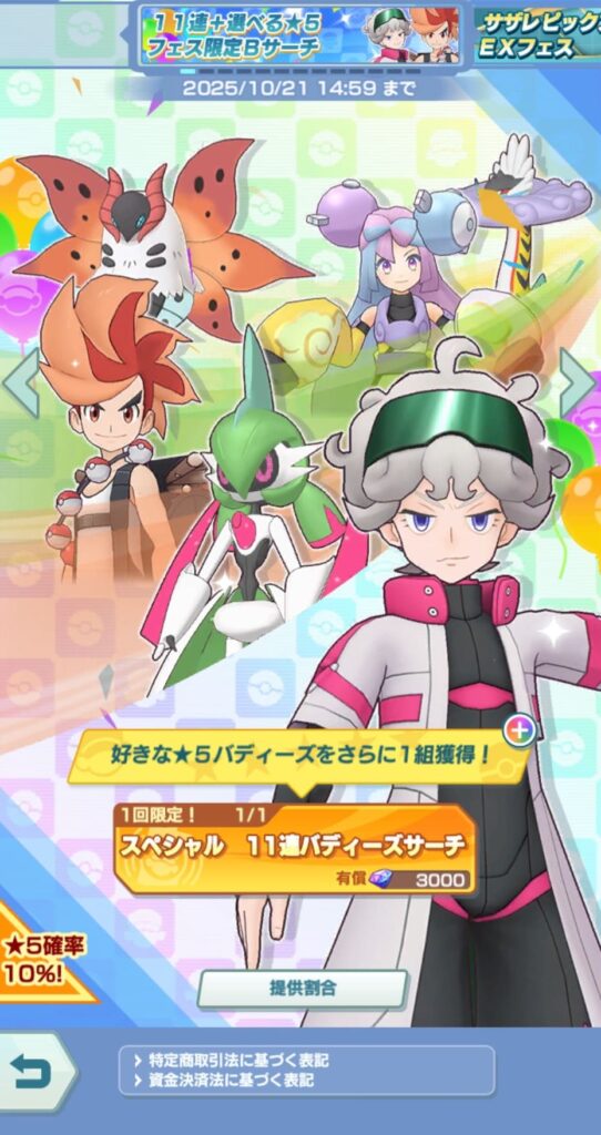 【ポケマス】2025年10月09日開催!11連+選べる★5フェス限定Bサーチについて