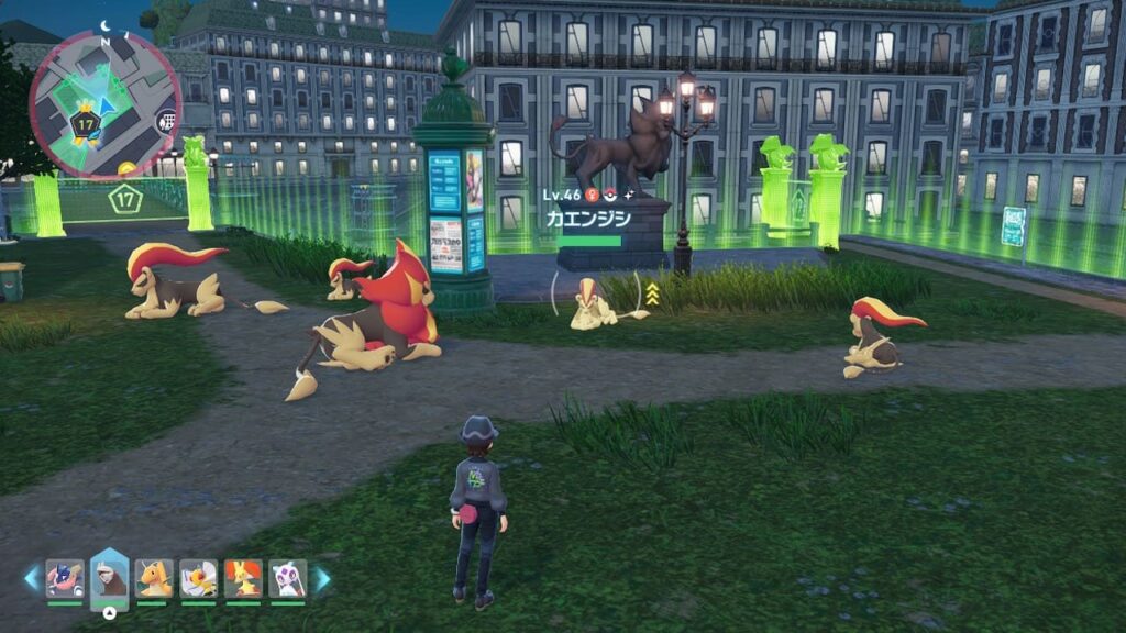 ①ワイルドゾーン17に出現するカエンジシは、ワイルドゾーン17内にあるベンチで厳選することが可能です。