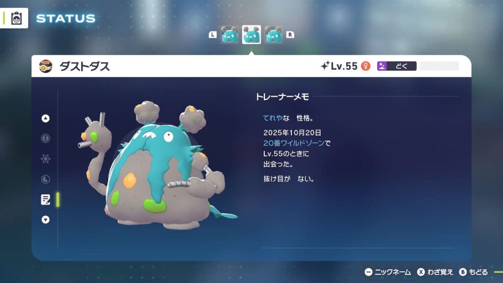 スポンサーリンク 【ポケモンZA】ダストダスの色違いをベンチ厳選できる場所についてポケモンZA 2025.10.27スポンサーリンク ダストダスをベンチ厳選できる場所についてワイルドゾーン20に出現するダストダスは、以下のベンチで厳選することが可能です。 【ポケモンZA】色違い厳選(ベンチ厳選)で使用しているコントローラーについて 色違い厳選のベンチ厳選とは? 今作では、ロードが発生すると周囲の出現ポケモンが切り替わる仕様になっています。 しかし、「色違いポケモン」に関してはロードが発生しても消えず、同じ場所に残り続ける仕様となっています。 この仕組みを...