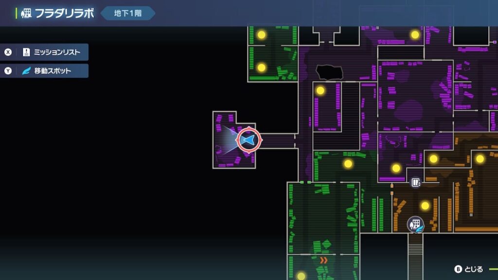 ②ファストトラベルによってフラダリラボの入り口に戻る。