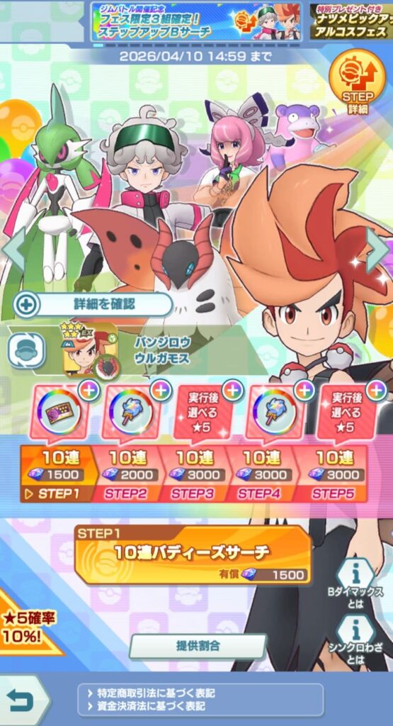 ジムバトル開催記念 フェス限定3組確定!ステップアップBサーチについて