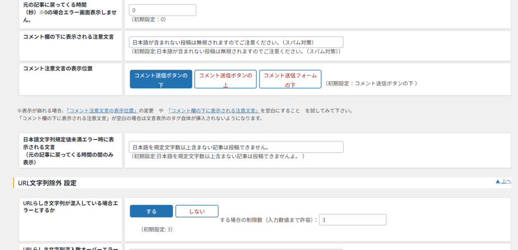 ※日本語のアンチコメントやスパム対策を重視する場合は、5文字に設定するとより効果的です。