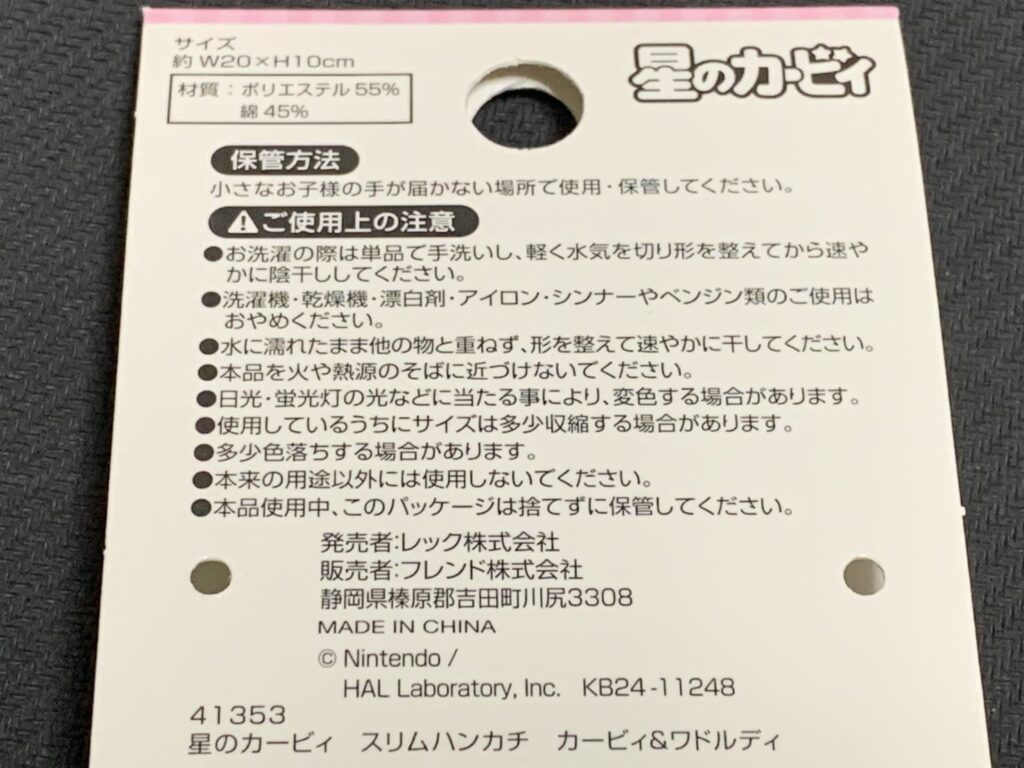 『カービィのスリムハンカチ』は、