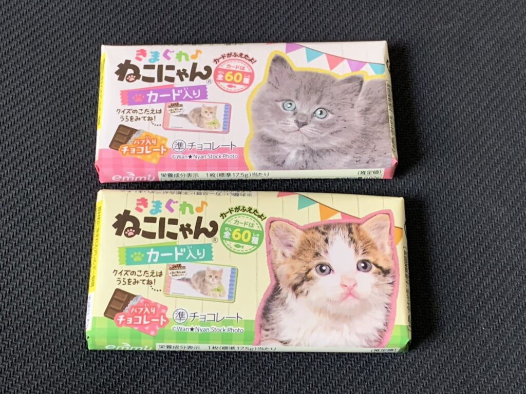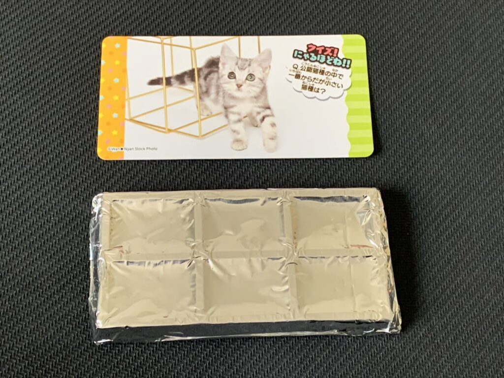 ネコのカードが付属するお菓子です。