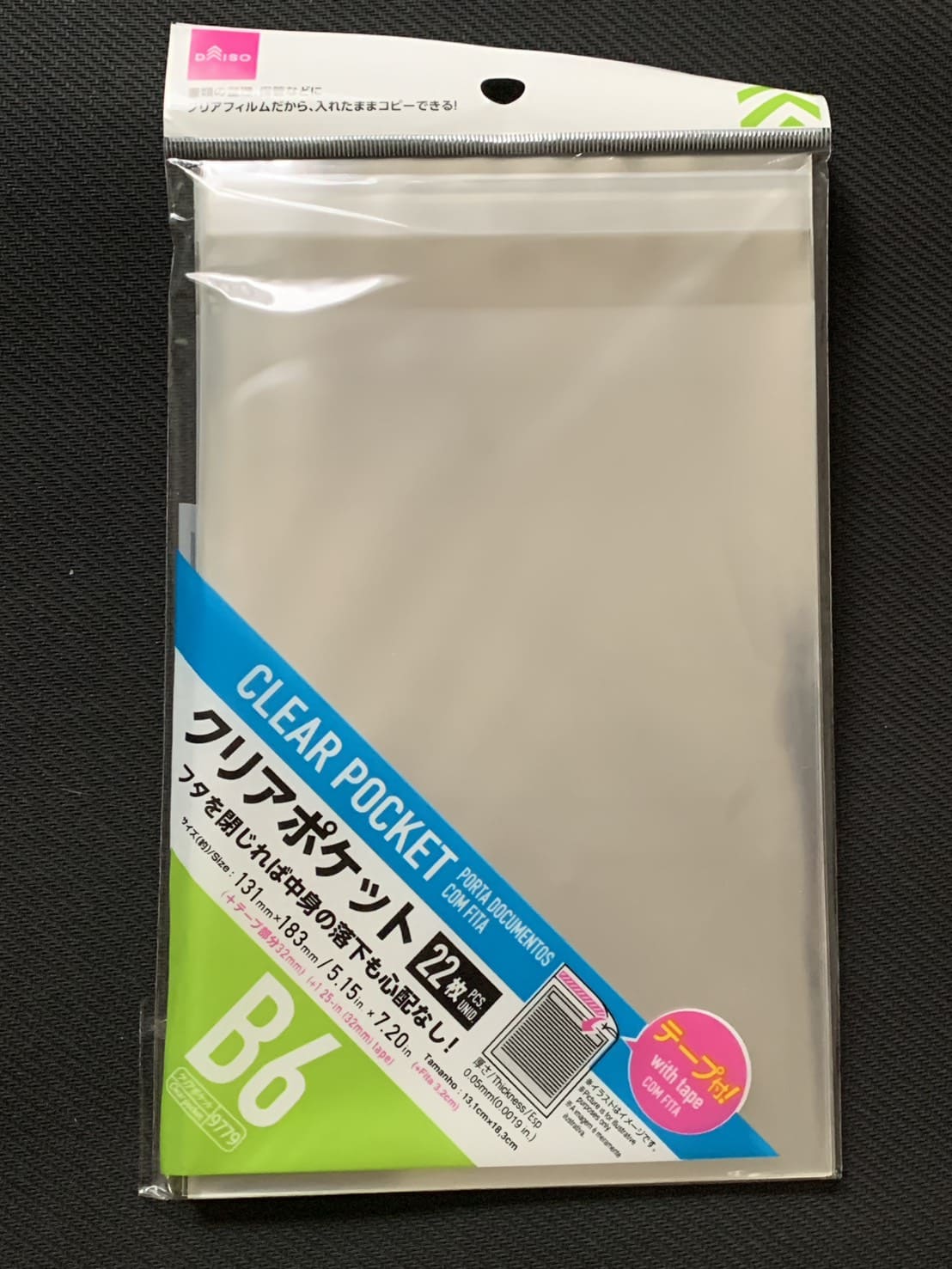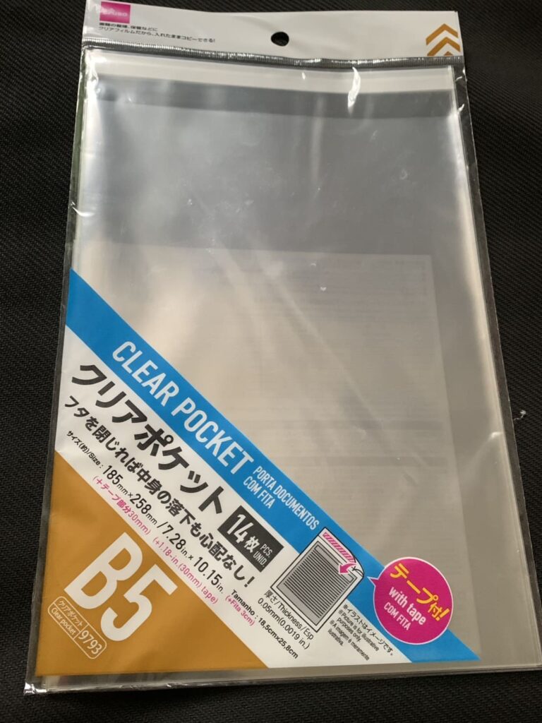 ダイソーの「クリアポケット」は、本来は書類の保管や整理に使用するグッズですが、今回はポケカの未開封ボックスの保護するものとして使用しています。